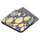Bright pattern of lemons and cloves on a dark blue laptop sleeve