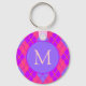 Bright Pink and Blue Argyle Pattern Monogram Keychain
