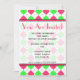 An invitation featuring a hot pink and lime green argyle background with hot pink trim. Opposite side features matching pink circle shaped frame with text "You Are Invited." Personalize the text with details of your occasion.