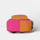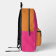 This colorblock backpack has a pocket with bright pink letters for the monogram on an orange background. All text can be edited or deleted.
