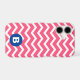 Bold bright pink and white classic chevron pattern with big central monogram.