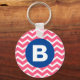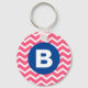Bright Pink and White Chevron Pattern Monogram Keychain