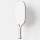 This modern pickleball paddle design features a white background, with your initial in bold bright pink text for a look that is simple and stylish, yet professional.