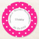 Bright pink and white polkadot wedding round paper coaster