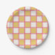 Bright Pink and Yellow Checkers Paper Plate