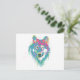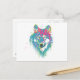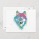 Bright Pink Blue Neon Watercolors Splatters Wolf Postcard