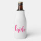 Bright pink bride, fuchsia script, wedding bottle cooler