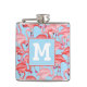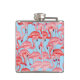 Bright Pink Flamingos On Blue | Add Your Initial Hip Flask