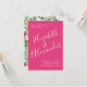 Beautiful bright pink floral wedding invitation save the dates with abundant greenery. Perfect for a floral theme or bright pink wedding in the Spring or Summer. Customize the colour and text to make this wedding invite your own!