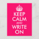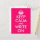 Bright Pink Keep Calm and Write On Postcard