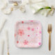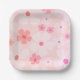 These paper plates feature a bold and fun and vibrant flower power design with blooms in pale and bright peaches and pinks over a pale peach background.