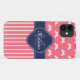 Bright Pink Wht Ribbon Pattern Navy Monogram Case-Mate iPhone Case