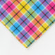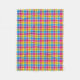 Fleece blanket in bright hot pink, yellow, and blue plaid, with black and white highlights. A Plaidwerx original pattern. Choose from three sizes.
