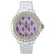 A stand out design featuring a bright purple and white diamond pattern. Trendy and sweet!