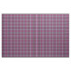 Fabric with a Plaidwerx original plaid pattern in bright fuchsia, lilac, and dark purple, with yellow accents. Pattern repeats every 1+3/8". Special order larger scale via https://plaidwerx.com/contact.htm