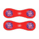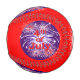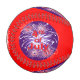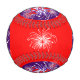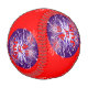 A fun 4th of July baseball covered with red and white fireworks, deep blue circles on a bright red background.