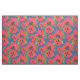 Bright Red and Black Oriental Poppies on Blue Fabric