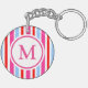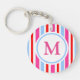 Bright Red and Blue Candy Stripes Monogram Keychain