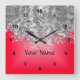 Bright red and faux glitter square wall clock