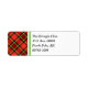 Return address labels with a bright Christmas plaid pattern in shades of scarlet red, lime green, maroon, and black.
