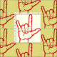 Add a Sign Language touch to your sewing project with this great Fabric featuring several Bright Red ASL I Love You Hands. Skirts, Shirts, Pillows, Quilts, and more. From our Sign Language Fabric Collection.