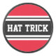 This fun hockey design features classic strong bold big letters inside a highlighted wide black stripe with double white stripes against a bright red background with "HAT TRICK" spelled out front and centre. Make It Your Own: The colours and text in this design can be personalized.