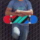Bright Red Blue Black Aqua Diagonal Racing Stripe Skateboard