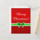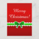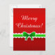 Beautiful holiday postcard with red pattern, green laced bow and customizable text.