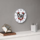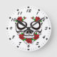 Bright Red Flowers Green Leaves Sugar Skull Round Clock