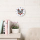This clock will delight anyone who loves flowers and skulls. Features a Black skull with bright Red roses, and bright Green leaves. This design is done in such a way to make it look really cool, and a beautiful time piece for any room in your home.