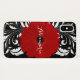 Add a lovely feminine touch with this cute bright red gerbera daisy flower, against a black and white damask swirl background. Cute and chic fashionable accessory with a vibrant crimson red floral motif and swirling white vines and scrolls on a field of black. Nice for women, girly girls or a nature loving girlfriend.