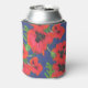Bright Red Oriental Poppies Pattern on Blue Can Cooler