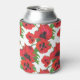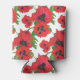 Bright Red Oriental Poppies Pattern on White Can Cooler