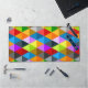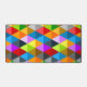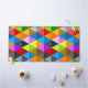 Many triangles in yellow, orange, red, pink, blue, green colours creating fun modern geometric pattern.
