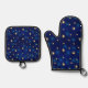 BRIGHT ROYAL BLUE WITH GOLD STARS OVEN MITT & POT HOLDER SET