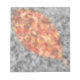A selectively coloured autumn photograph of fallen crepe myrtle leaves, with a gold-framed leaf shape of bright red, orange, and yellow against a black and white background.