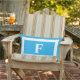 Bright Sky Blue Bold Monogram Initial Outdoor Lumbar Pillow