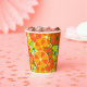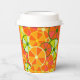 This party cup is adorned with a colourful print featuring circles of overlapping sliced citrus fruit in bright orange, yellow, green, and pink hues.