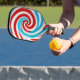 Twirl into your next pickleball game with this vibrant paddle, which features a captivating spiral lollipop design. The eye-catching paddle is perfect for adding a bright and bold flourish to your pickleball pursuits, and will transport you into summer fun with a playful flourish. The front displays a close-up of the swirling red, white and blue design, while on the back is a smaller picture of the lollipop on a blue background. The back can also be personalized with your initial and name, for an extra individual touch.