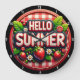 Decorative wall clock designed with a vibrant summer theme, including fresh strawberries, green leaves, and cheerful text for a lively seasonal touch perfect for home or office settings.