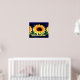 This bright sunflower art poster has hello sunshine in yellow and blue for bold colourful wall art decor in home or office. Original artwork copyright Ann Powell all rights reserved.