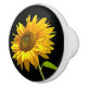 Bright yellow sunflower standing out in contrast to the black background creating a bold effect.