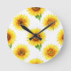 Bright Sunflower Watercolor Seamless Pattern Round Clock