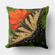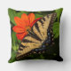 Bright sunny orange daisy with butterfly on throw pillow