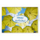 Vibrant and bright yellow umbrellas hang as a canopy under a blue sky on a sunny summer day to provide shade and a bit of quirky fun to those that pass under. Let these umbrellas brighten the day of a special birthday person! Inside reads: Today is the birthday of the person who is spreading joy and positivity all around. May your birthday and your life be as wonderful as you are! This birthday card is fully customizable and ready to be personalized.