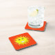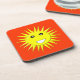 This awesome cork coaster features a bright smiling yellow sun that is guaranteed to make you smile even on the most miserable days. It is on a red-hot background and has a big white smiley mouth and huge black eyes with white pupils.