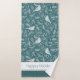 Bright Teal Green Winter White Bird Floral Pattern Bath Towel Set