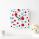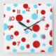 Bright Teal Turquoise Red White Polka Dots Pattern Square Wall Clock