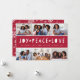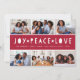 Share six favourite photos with our bright and festive holiday card. A vibrant cherry red centre stripe reads "joy, peace, love" in white cutout lettering with your names and the year beneath.
