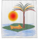 Shower in the tropics with my colourful and simple vector design of a palm tree, beach towel, hot sun and waves.